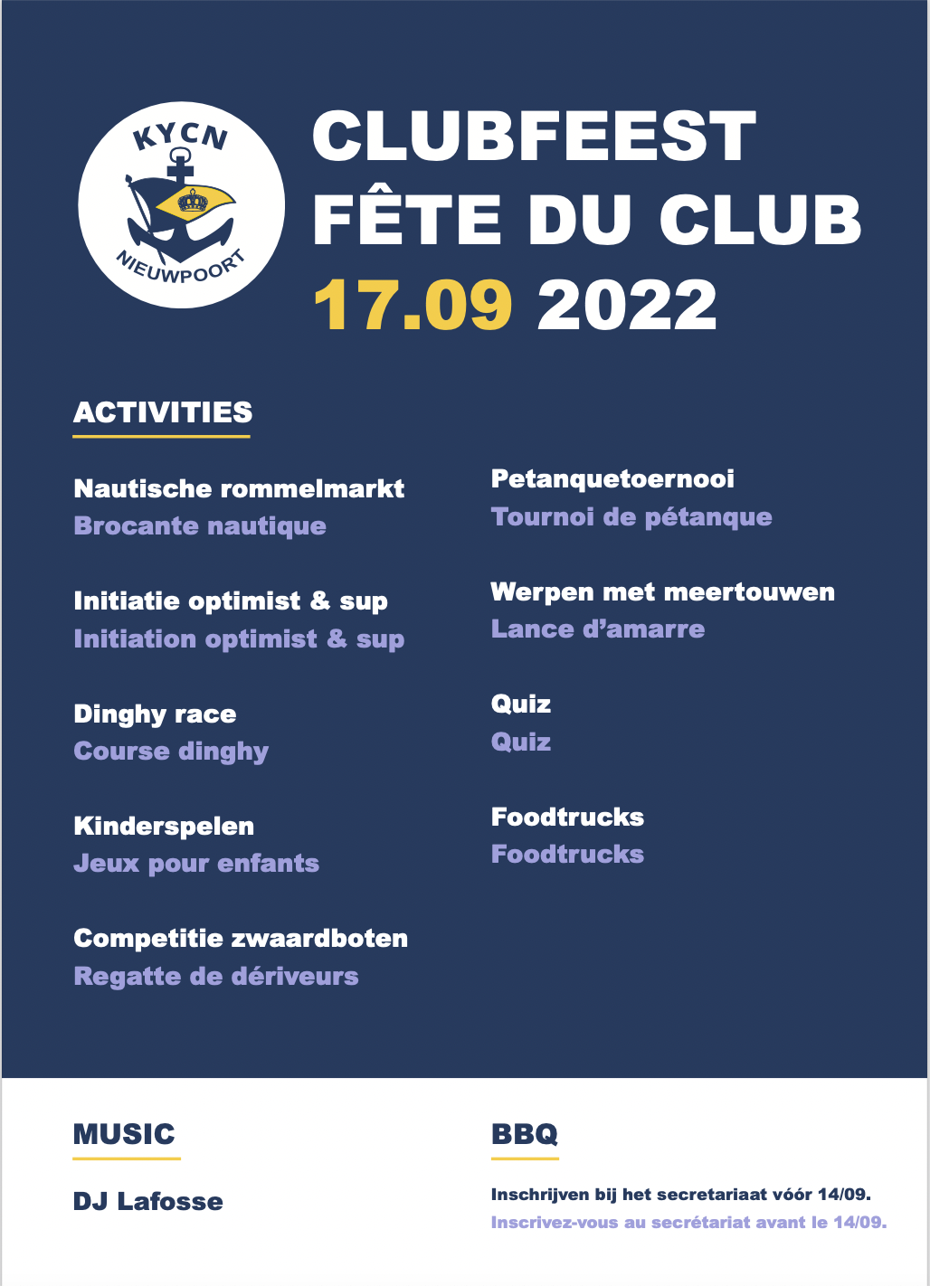 Le 17 septembre 2022, montrons ce qui nous distingue d'autres clubs: notre esprit de Club, notre esprit de la fête!