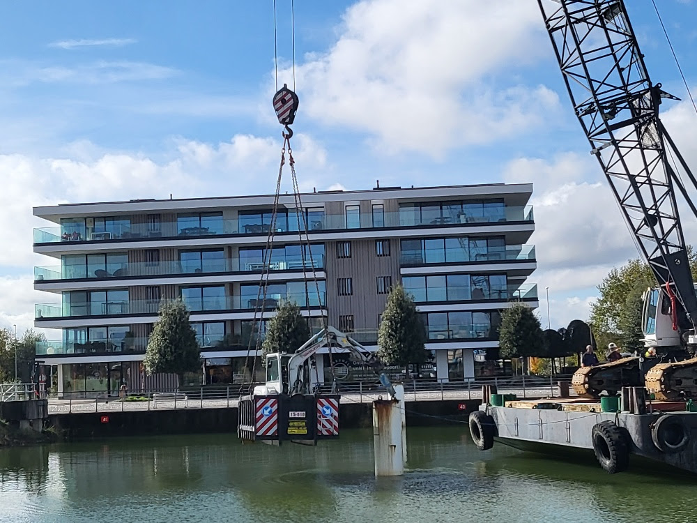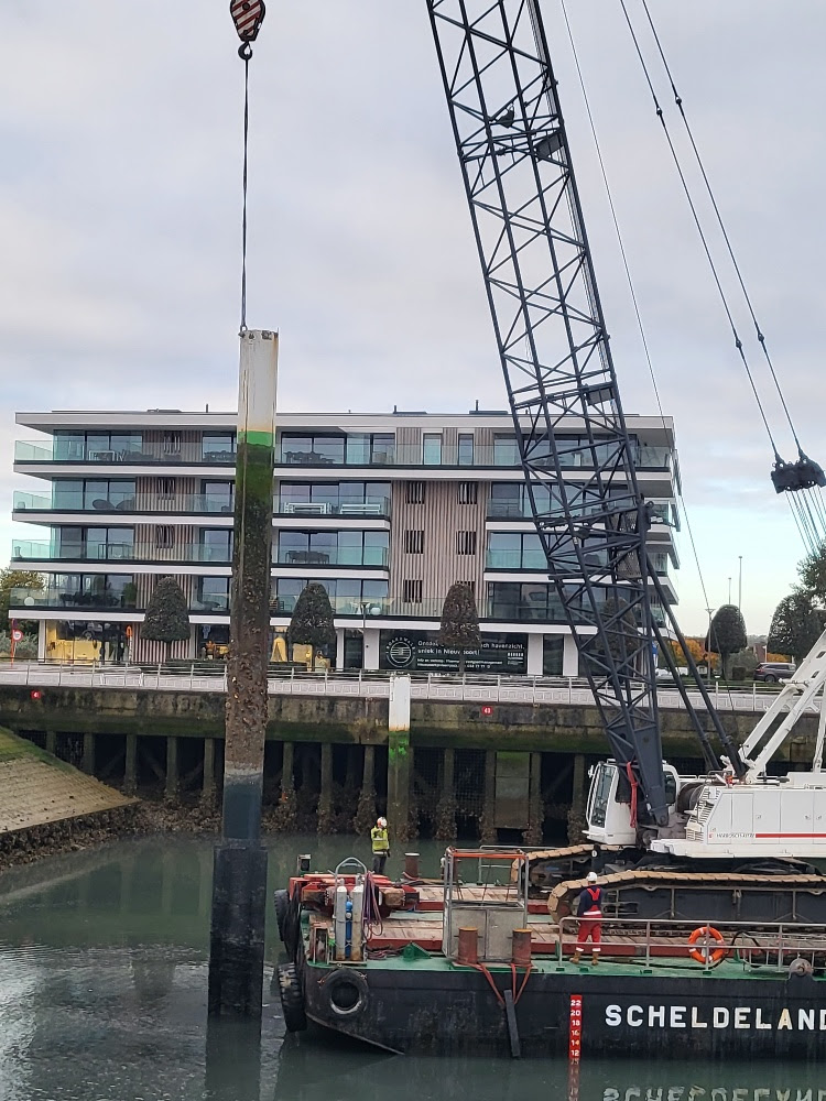 Sur le Kromme Hoek, notre équipe commence à renouveler les catways.