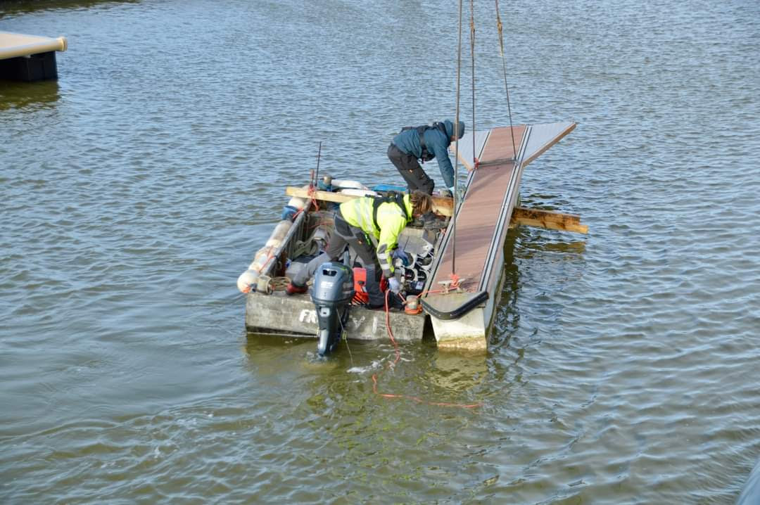 Certains d'entre vous auront peut-être déjà remarqué que les nouveaux catways ont quittés le parking et sont maintenant installés dans le port.